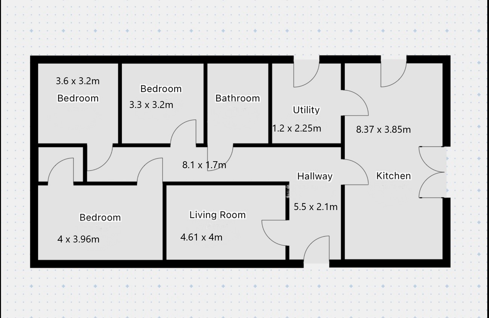 Hallway 5.50m x 2.10m / 8.10m x 1.70m timber floor