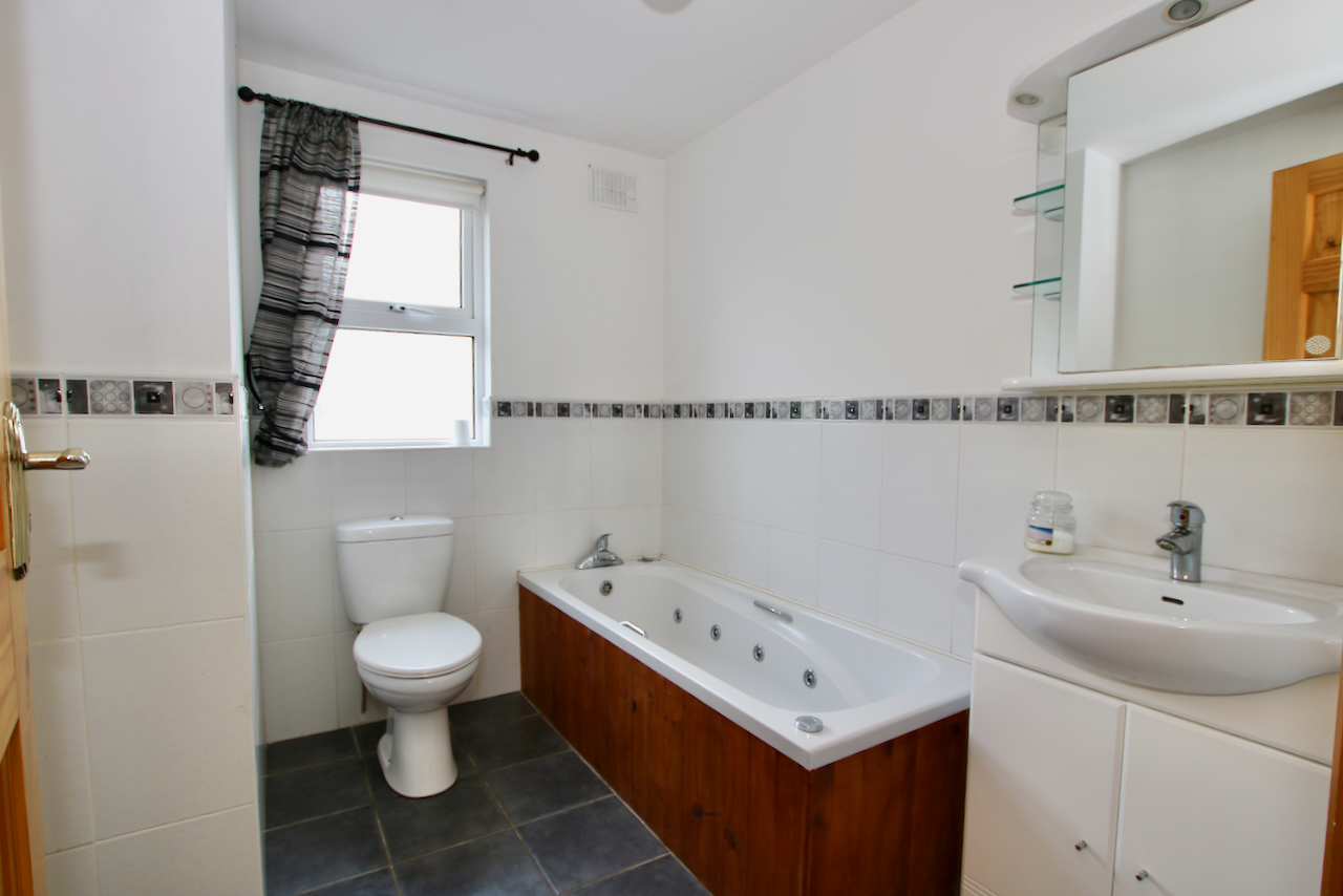 Family Sized Bathroom 2.2m x 2.9m tiled floor with jacuzzi bath